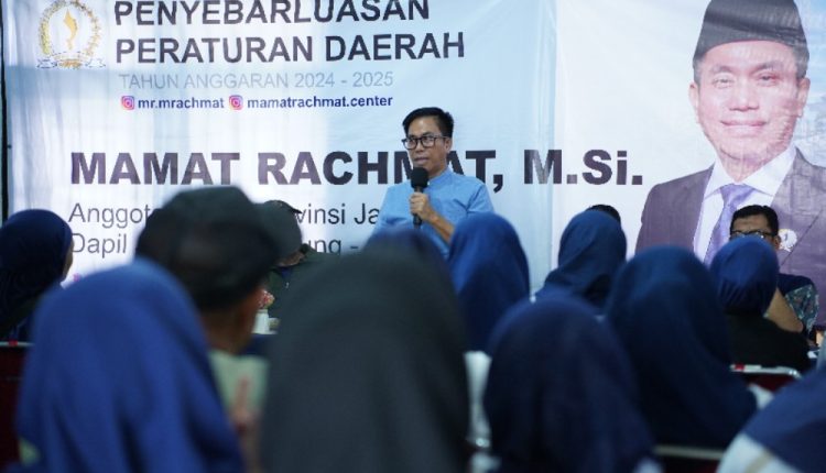 BANDUNG – Anggota DPRD Provinsi Jawa Barat dari Fraksi NasDem, Drs. Mamat Rachmat, M.Si., menggelar Sosialisasi Peraturan Daerah (Sosper) No. 5 Tahun 2017 tentang Penyelenggaraan Pendidikan di Gedung Serba Guna RW 07, Kelurahan Cijaura, Kecamatan Buahbatu, Kota Bandung, Sabtu (24/5/2025).