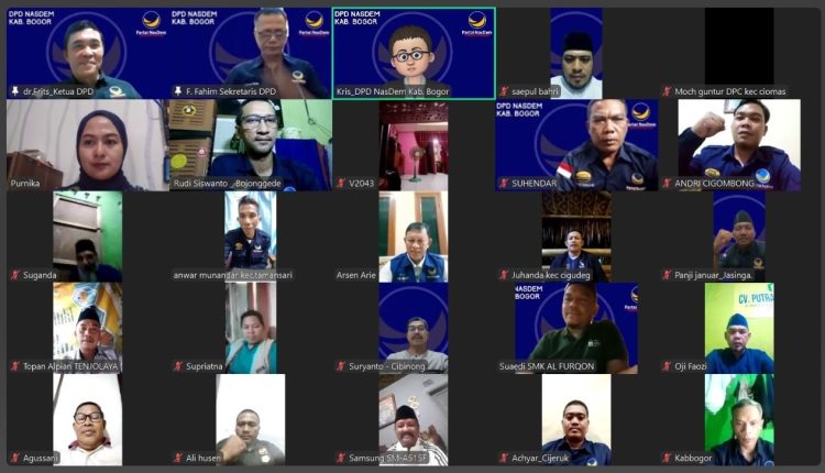BOGOR (4 Juli) — Dalam rangka menyiapkan kemenangan pada Pemilu 2029, DPD Partai NasDem Kabupaten Bogor menggelar pengarahan perdana secara virtual kepada para calon Ketua DPC dari 40 kecamatan. Kegiatan ini menjadi langkah awal dalam proses restrukturisasi dan penguatan organisasi hingga ke tingkat kecamatan.