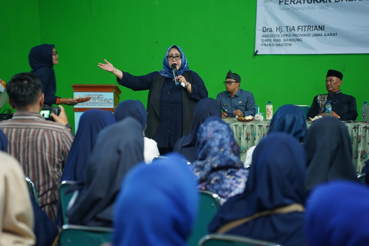 BANDUNG — Anggota DPRD Provinsi Jawa Barat dari Fraksi Partai NasDem, Dra. Hj. Tia Fitriani, melaksanakan kegiatan pendidikan politik sekaligus sosialisasi Peraturan Daerah (Perda) Nomor 6 Tahun 2019 tentang Kewirausahaan Daerah di GOR Desa Gunungleutik, Kecamatan Ciparay, Kabupaten Bandung, Jumat (12/9/2025) siang.