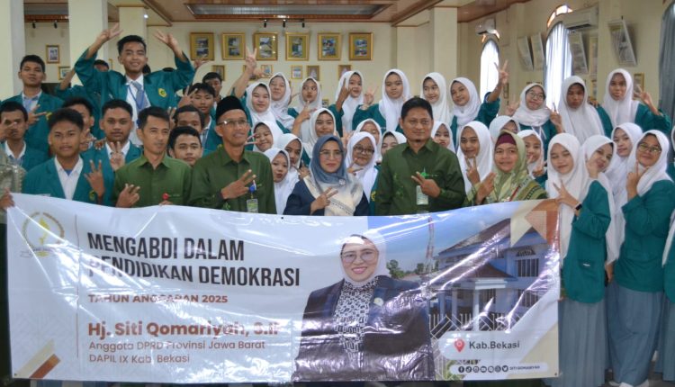 Bekasi, Senin, 17 November 2025 — Anggota DPRD Provinsi Jawa Barat, Hj. Siti Qomariyah, S.IP, dari Fraksi Partai NasDem Komisi II Dapil 9, menegaskan pentingnya penanaman nilai demokrasi sejak dini bagi para pelajar. Hal tersebut disampaikannya dalam kegiatan Sosialisasi Mengabdi dalam Pendidikan Demokrasi di SMKIT Nurul Qolbi, Desa Pusaka Rakyat, Kecamatan Tarumajaya.