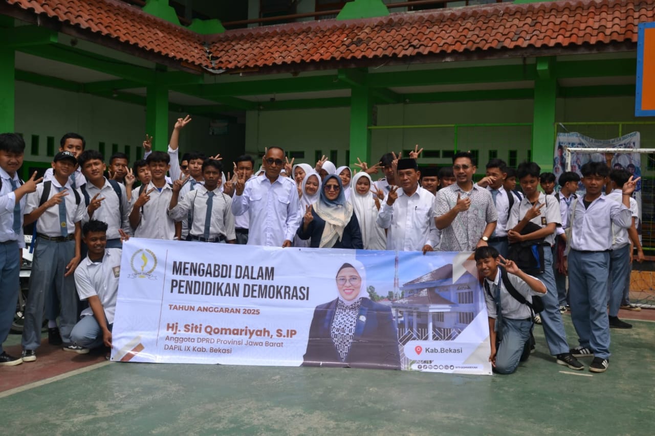 Bekasi — Anggota DPRD Provinsi Jawa Barat dari Fraksi NasDem, Hj. Siti Qomariyah, S.IP., melaksanakan kegiatan Sosialisasi Penguatan Pendidikan Demokrasi di MI Attaqwa 08 Setia Asih, Kecamatan Tarumajaya, Selasa (2/12/2025). Kegiatan ini merupakan bagian dari upaya DPRD Jabar untuk menanamkan pemahaman demokrasi sejak dini, khususnya bagi generasi muda dan pemilih pemula.