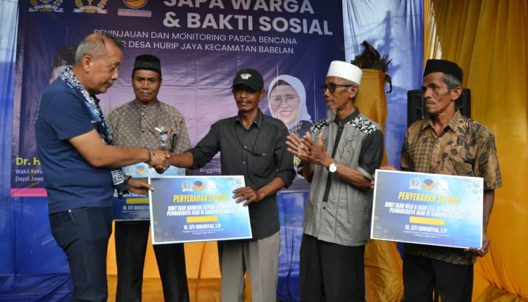 Dalam kegiatan tersebut, Saan turut menyerahkan bantuan berupa paket sembako dan benih ikan sebagai bentuk kepedulian terhadap warga yang terdampak. Ia berharap bantuan tersebut dapat membantu memenuhi kebutuhan dasar sekaligus mendorong pemulihan ekonomi masyarakat pascabanjir.